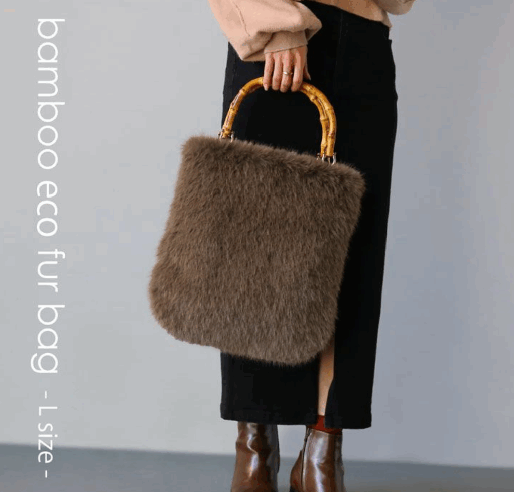 ふんわりエコファー×バンブーハンドルのファーバッグ。