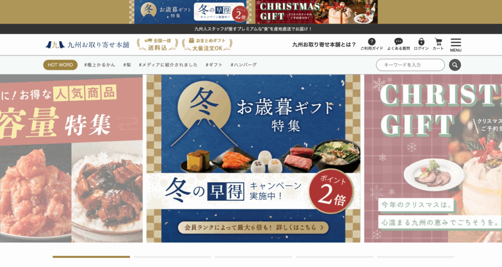 【PR】九州お取り寄せ本舗 九州のプレミアムな“食”をお届けする通販サイトのご紹介!九州各県の定番食から、九州人が知っているご当地食材など、幅広く取り扱っているそうです♪◆こんな方におすすめ◆ 【1】 グルメな方九州出身の方の購入や、九州にゆかりのある方へのギフトとして購入される方、 九州旅行の思い出として購入される方が多いです。 九州の地元民オススメの幻グルメも取り扱っており、食通の方にも楽しめます! 【2】 スイーツ好きな方「バスクチーズケーキ」や「半熟カステラ」など、豊富に取り扱っています。 「長崎カステラ」などの菓子も幅広い年代の方に好まれています。 【3】 健康志向の方多種多様なヘルシー食品があります! 【4】ギフト用としてお探しの方オリジナルのギフトセットを取り揃えられています。 多数の商品で熨斗・手提げ袋などのギフト対応もあるそうです!離島ふくめて全品送料無料の買いやすいサイトになっています。 幅広い商品を取り扱っているので、サイトを見て九州の食を気軽に注文できるのは嬉しいですね( ^ω^ ) 詳細はこちらをクリック おすすめ商品 博多流 焼き豚足 3種4本セット2,780円(税込) 博多の居酒屋でお馴染み博多流の「焼き豚足」は、こんがり焼き目が香ばしい定番メニューです。こだわりの2度の火入れと、「茹で」ではなく、高圧釜で蒸すことで旨みがぎゅっと詰まって、とろとろのゼラチン質が美味しい!湯煎でそのまま食べても、グリルで焼いて更にカリッと感と一緒にいただくのもおすすめです。 本格もつ鍋セット2~3人前×2セット 5,690円(税込) 厳選した和牛ホルモンは肉厚な脂身に濃厚な旨み。和牛もつに合う醤油ベースのオリジナルスープに溶け出した和牛の旨みがちゃんぽん麺に絡みつき、絶品の商品。 おすすめ情報 商材名 九州お取り寄せ本舗運営者 NM※当サイトはアフィリエイトプログラムを利用し宣伝目的で作成しております。